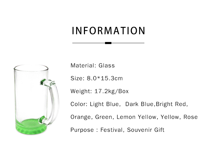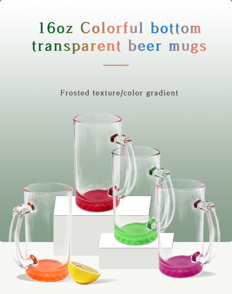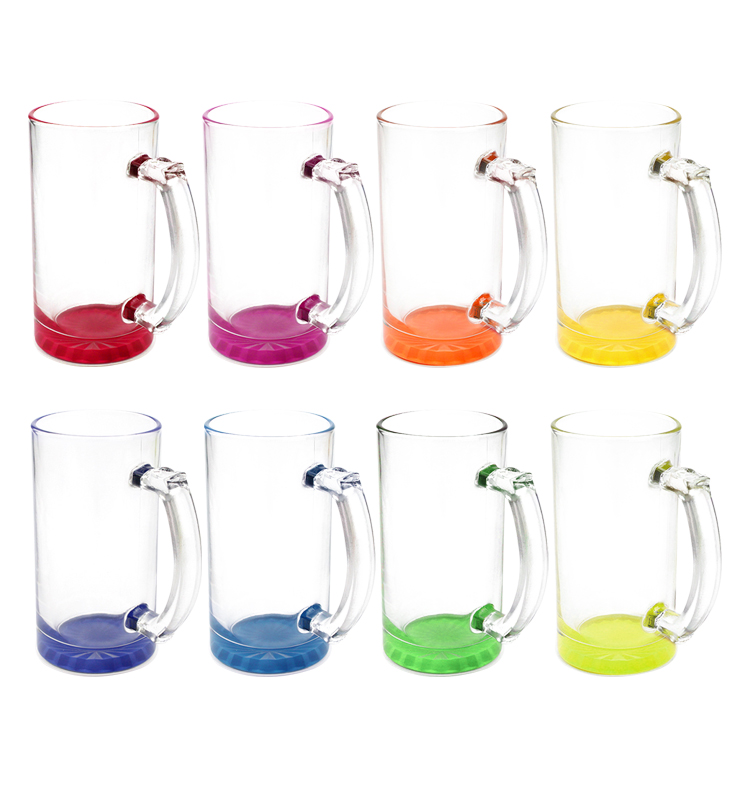 16oz Colorful Bottom Transparent Glass Beer Mugs