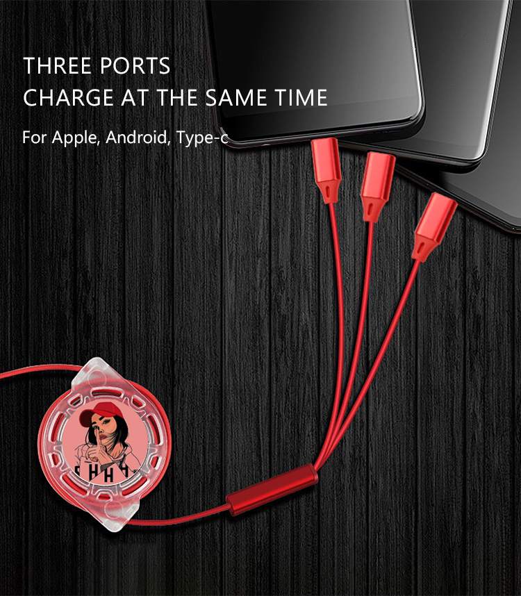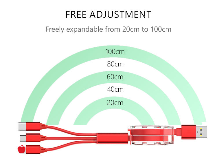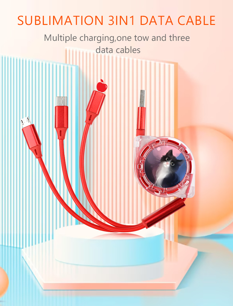 Sublimation Telescopic 3 IN 1 USB Charging Cable For iPhone Android Type-C Data Line