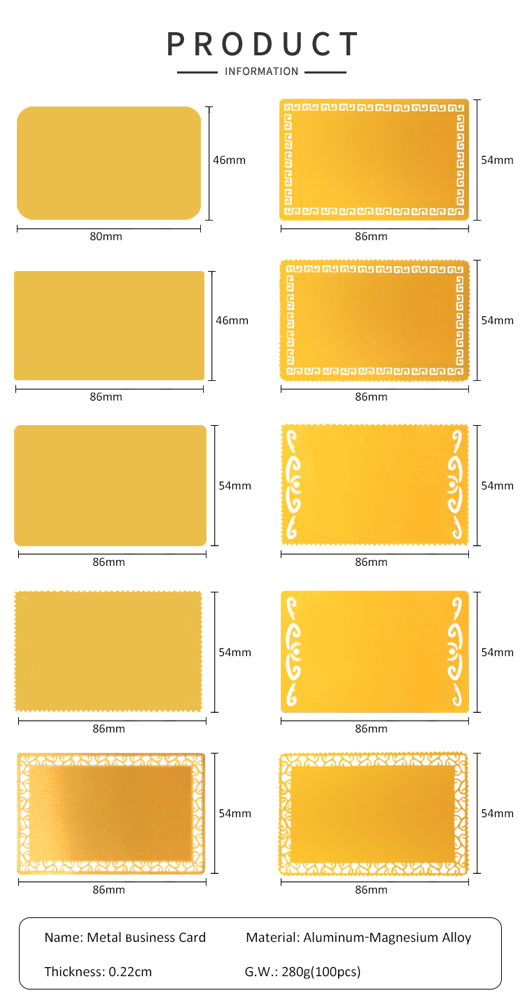 Blank Metal Business Card Printable Name Cards Customize for Promotion Gift Card Desk Business Card Number Tag Metal Cards