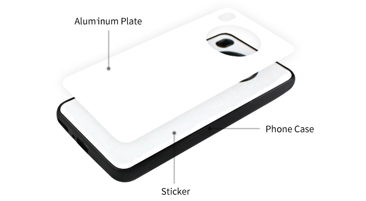 Phone case includes a peel-away strong self-adhesive back to affix your insert to after sublimation.