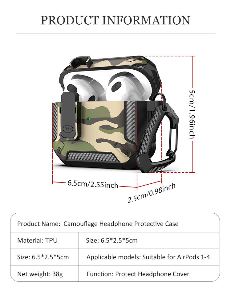 Camouflage TPU AirPods Case for AirPods Pro/1/2/3/4 Durable TPU AirPods Cover Shockproof AirPods Case