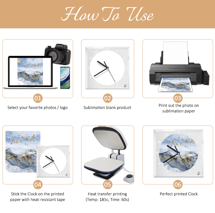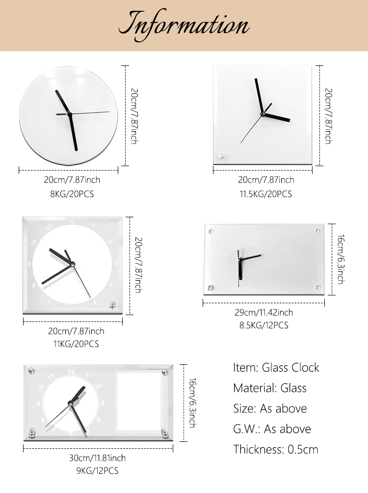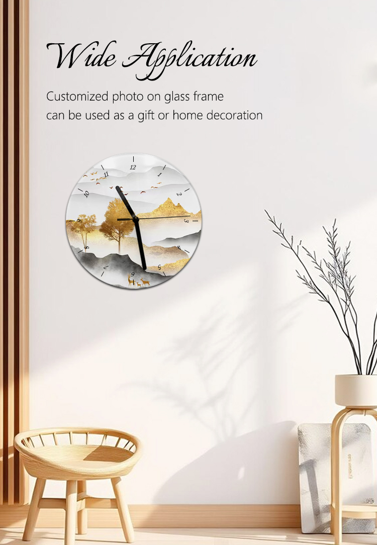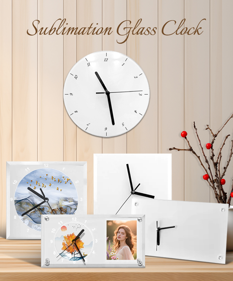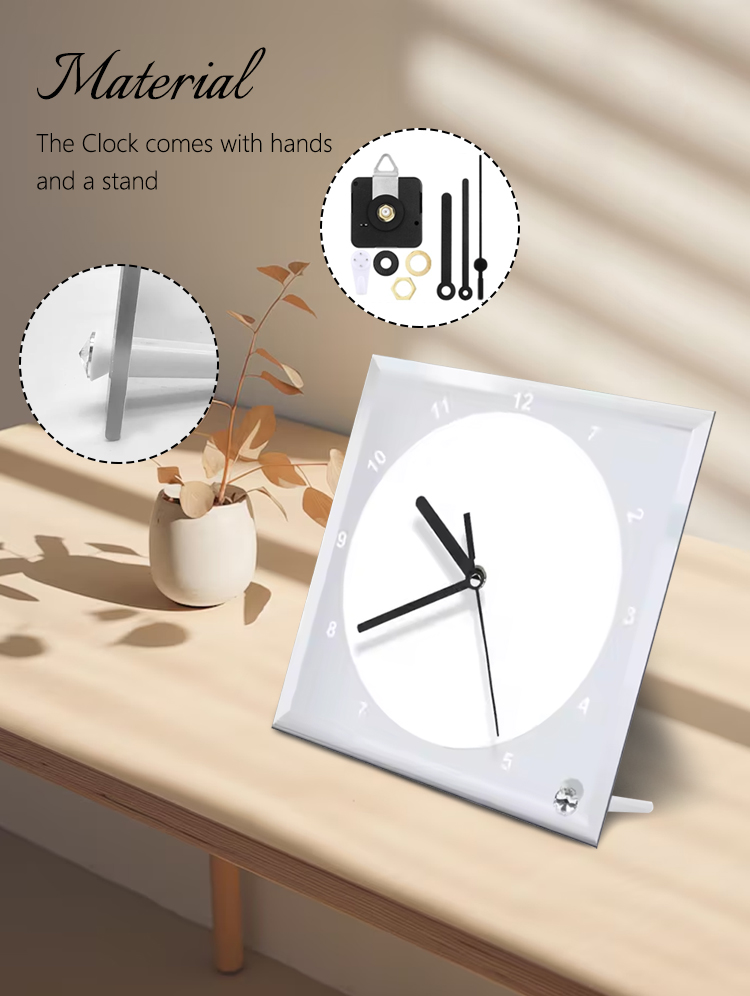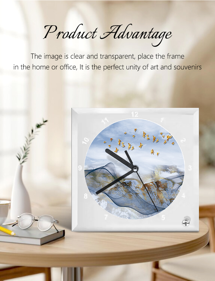 Customizable Sublimation Glass Clock Glass Photo Frame - Heat Transfer Printed Wall Clock / Desk Clock with Black Pointer