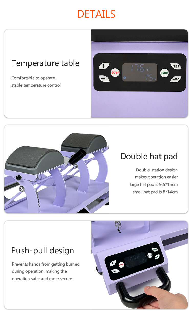 Hat Heat Press Machine is used for Cap heat transfer DIY printing. The sublimation heat transfer machine can transfer colorful pictures and characters of sublimating and dissolved printing ink onto the blank sublimation Products.