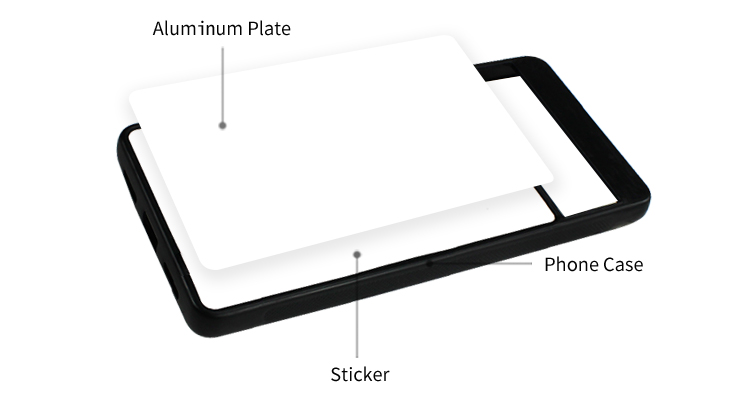 Phone case includes a peel-away strong self-adhesive back to affix your insert to after sublimation.