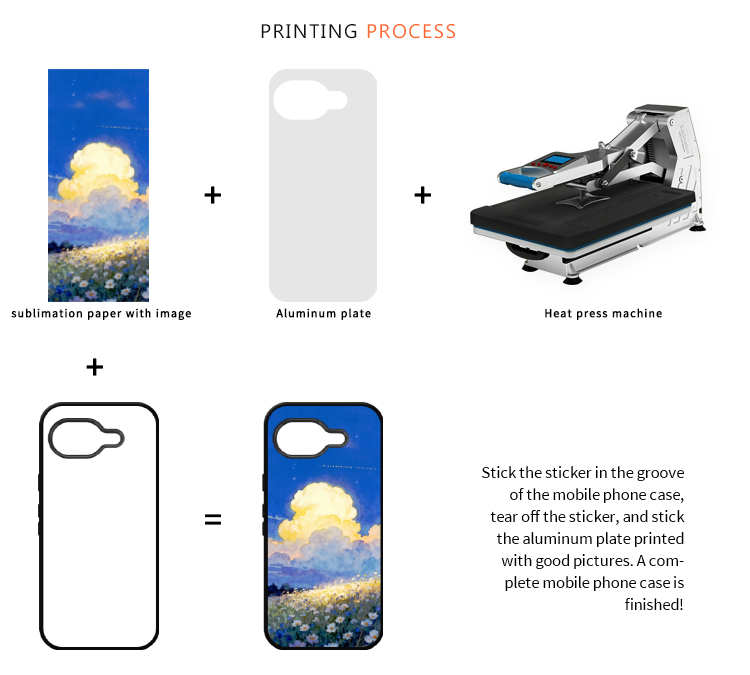 Feature: Various styles with competitive price; Premium quality hard rubber TPU sublimation case; Includes a pure white printable metal insert panel; Forged from high grade hard plastic, durable and light weight; Phone case includes a peel-away strong self-adhesive back to affix your insert to after sublimation.