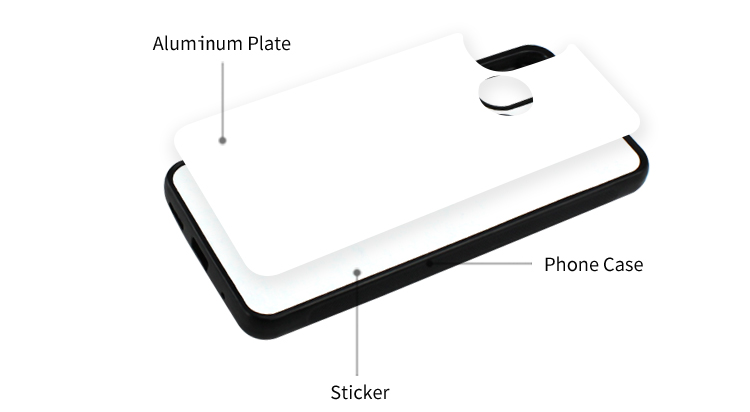 Phone case includes a peel-away strong self-adhesive back to affix your insert to after sublimation.