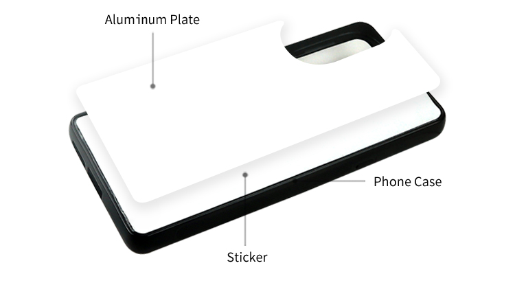 Phone case includes a peel-away strong self-adhesive back to affix your insert to after sublimation.