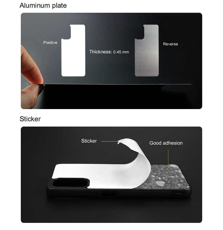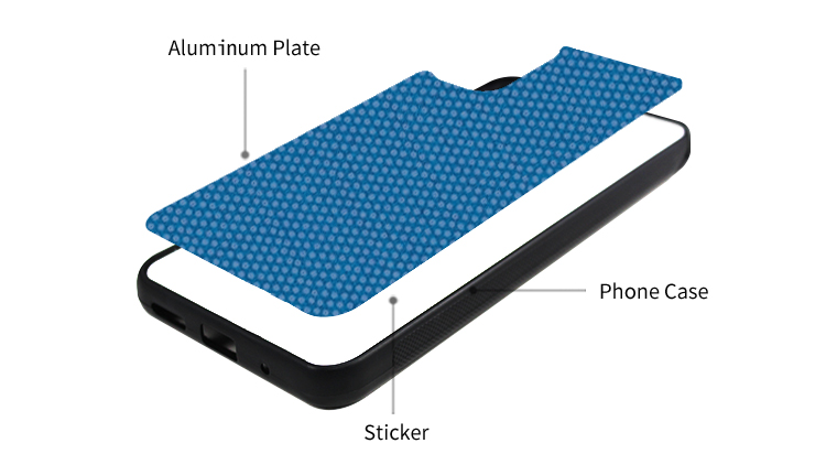 Phone case includes a peel-away strong self-adhesive back to affix your insert to after sublimation.