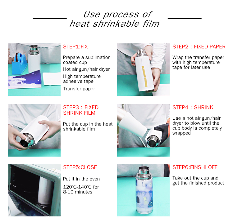 * Sublimation shrink wrap sleeves, easy sublimation heat transfer without any heat transfer machine, only film +sublimation blank +oven