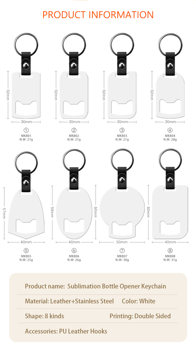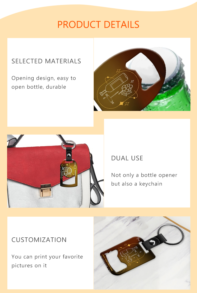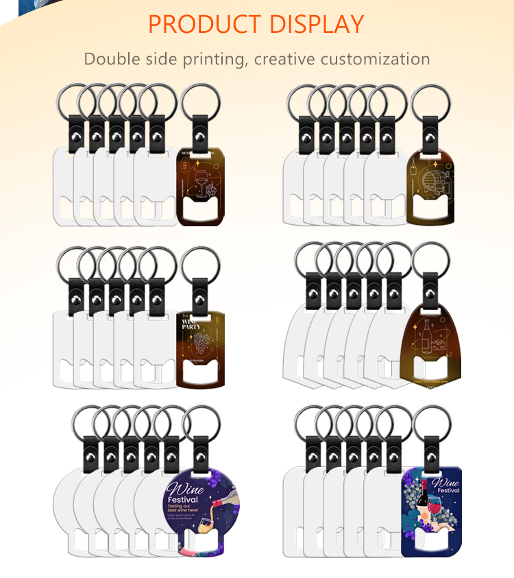 Make your keychain! Sublimation key chains can easily be turned into functional pieces of art. With these bottle open key chains metal keyring,you can add any image,quote or photo to the sublimation coated sides. Key chains are simple,everyday products that are always in demand and in big stock for fast delivery.