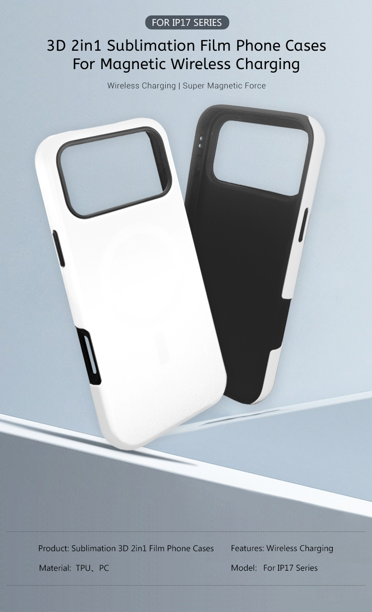 New arrival Sublimation 3D 2in1 Magsafe Film Phone Case For iPhone 17,16,15,14,13 Series Support Wireless Charging
