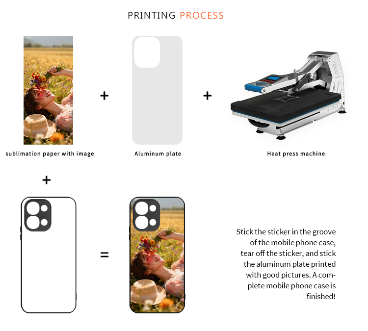 Various styles with competitive price; Premium quality hard plastic sublimation case; Includes a pure white printable metal insert panel; Forged from high grade hard plastic back, Soft rubber smooth sides; Phone case includes a peel-away strong self-adhesive back to affix your insert to after sublimation.