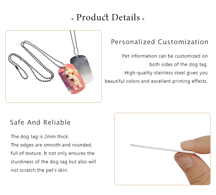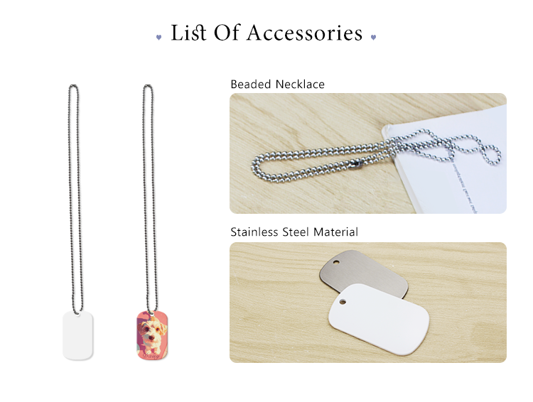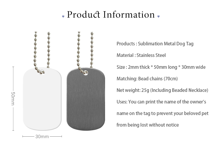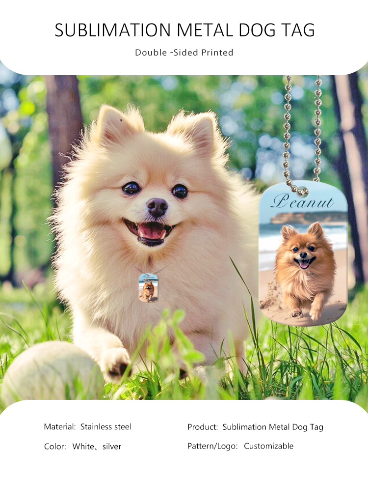 New Arrival Sublimation Stainless Steel Double Sided Print Dog Tags White & Silver Available