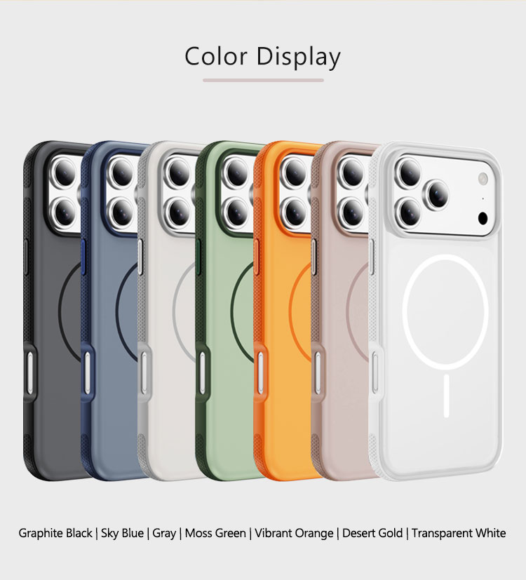 Upgrade your device with this original-style magnetic phone case, featuring a built-in circular MagLoop for seamless wireless charging and MagSafe accessory compatibility. Available in seven stylish hues—Graphite Black, Sky Blue, Gray, Moss Green, Vibrant Orange, Desert Gold, and Transparent White—it blends sleek design with practical functionality.