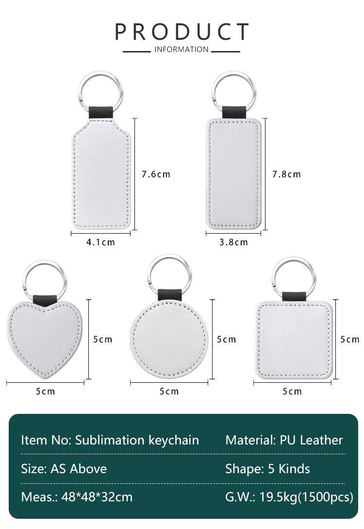 Feature: Various styles with compatible price; Premium quality leather keyring; Each individual keyring is supplied in a plastic PP package; Printable on both sides "front and back".