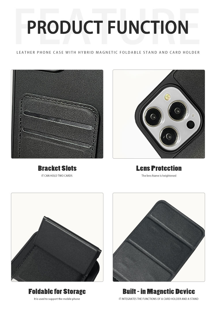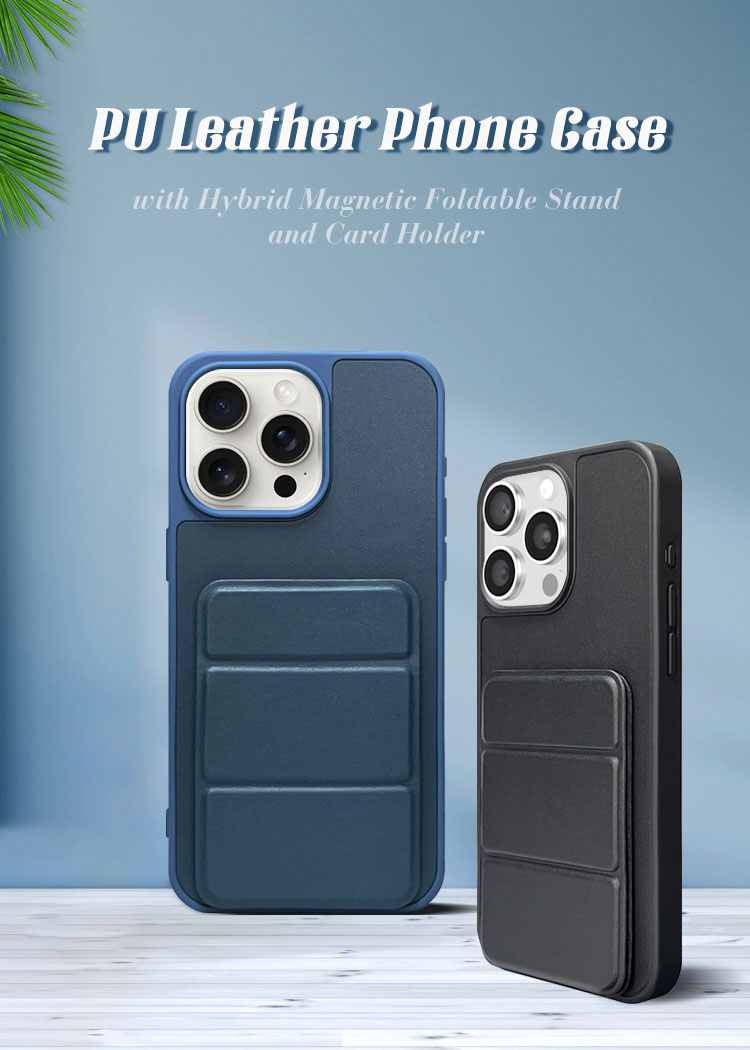 PU Leather Phone Case with Mag Foldable Stand-Card Holder for iPhone 16,15,12,11 Series