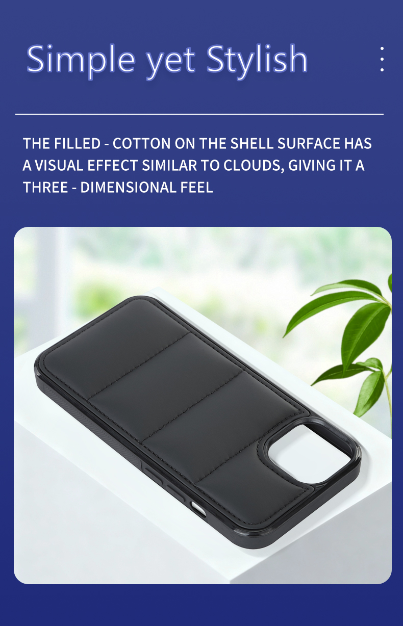 Ideal for anyone seeking a fashionable, protective phone accessory that stands out with its down jacket-inspired design.