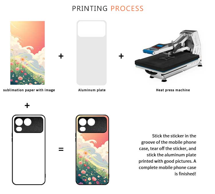Feature: Various styles with competitive price; Premium quality hard rubber TPU sublimation case; Includes a pure white printable metal insert panel; Forged from soft rubber non slip sides, hard plastic back, durable and light weight; Phone case includes a peel-away strong self-adhesive back to affix your insert to after sublimation.