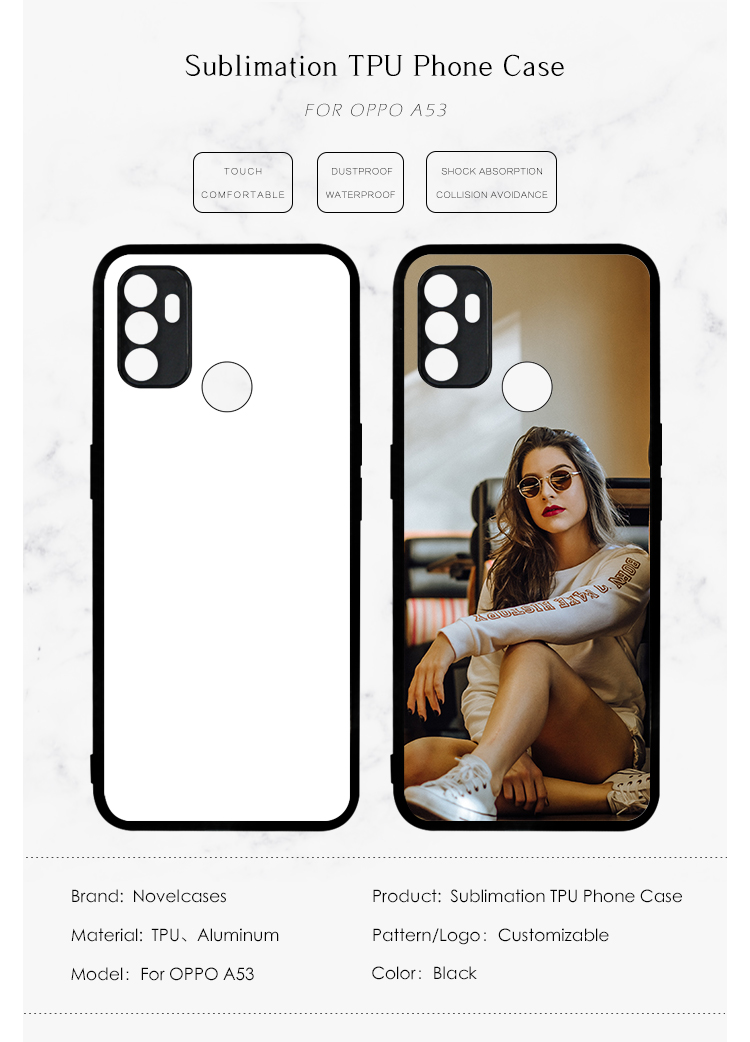 For Oppo A38 4G/A17/ A36/A9 4G/ A53/A32 /A53S/ A8 /A31/ A91/A92S / Reno 4Z/ A97 5G Sublimation 2D TPU Case Cover With Aluminum Insert DIY Silicone Cell Phone Shell