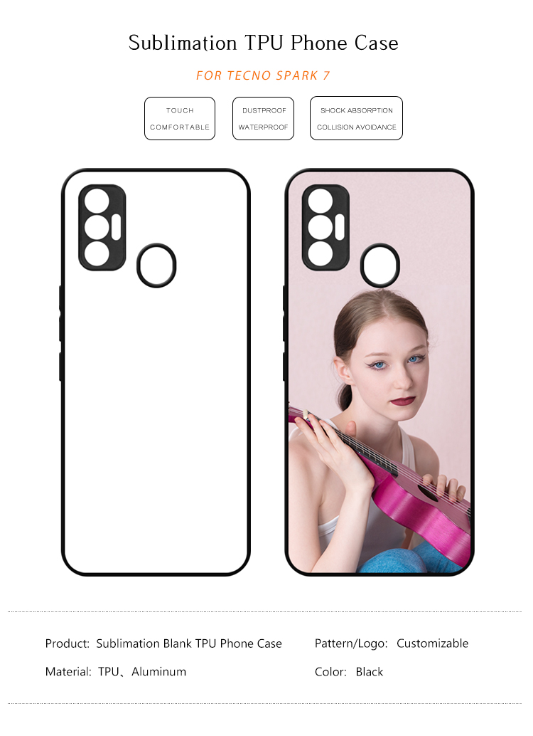 Smooth Sides!!! For Tecno Spark 7 Series Sublimation 2D TPU Silicone Phone Case Cover With Aluminum Insert