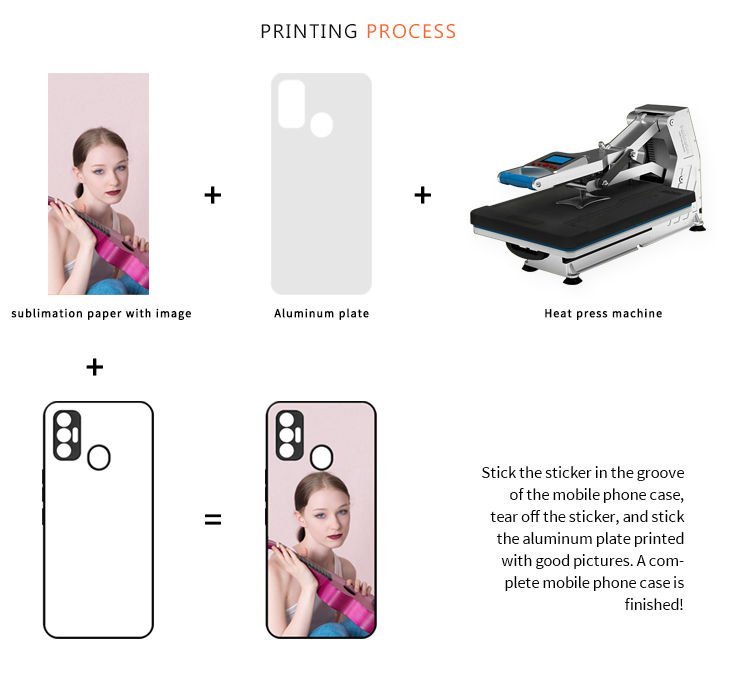Feature: Various styles with competitive price; Premium quality hard rubber TPU sublimation case; Includes a pure white printable metal insert panel; Forged from high grade hard plastic, durable and light weight; Phone case includes a peel-away strong self-adhesive back to affix your insert to after sublimation.