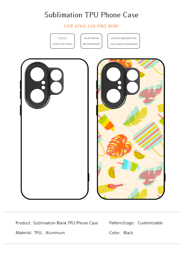 Feature: Various styles with competitive price; Premium quality hard rubber TPU sublimation case; Includes a pure white printable metal insert panel; Forged from high grade hard plastic, durable and light weight; Phone case includes a peel-away strong self-adhesive back to affix your insert to after sublimation.