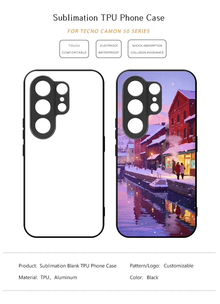 Feature: Various styles with competitive price; Premium quality hard rubber TPU sublimation case; Includes a pure white printable metal insert panel; Forged from high grade hard plastic, durable and light weight; Phone case includes a peel-away strong self-adhesive back to affix your insert to after sublimation.