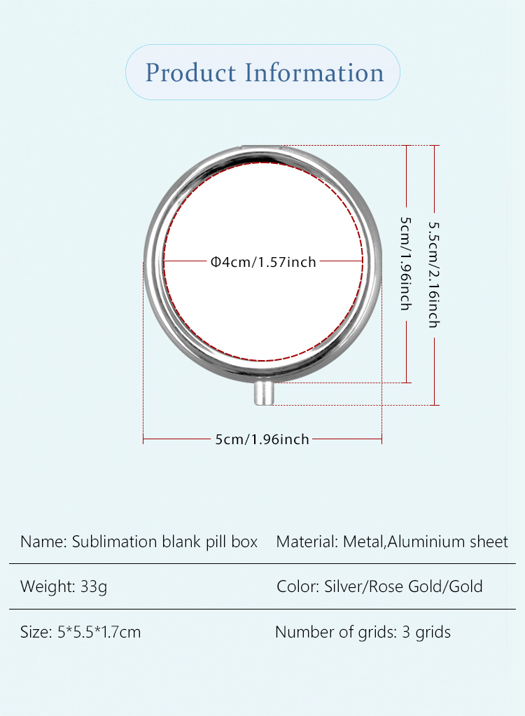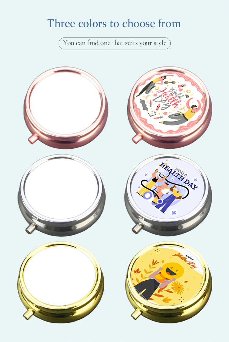 Sublimation 3 Grids Pill Box Custom Heat Transfer Metal Pill Box - Personalized Medication Organizer for Bulk Orders & Promotional Gifts