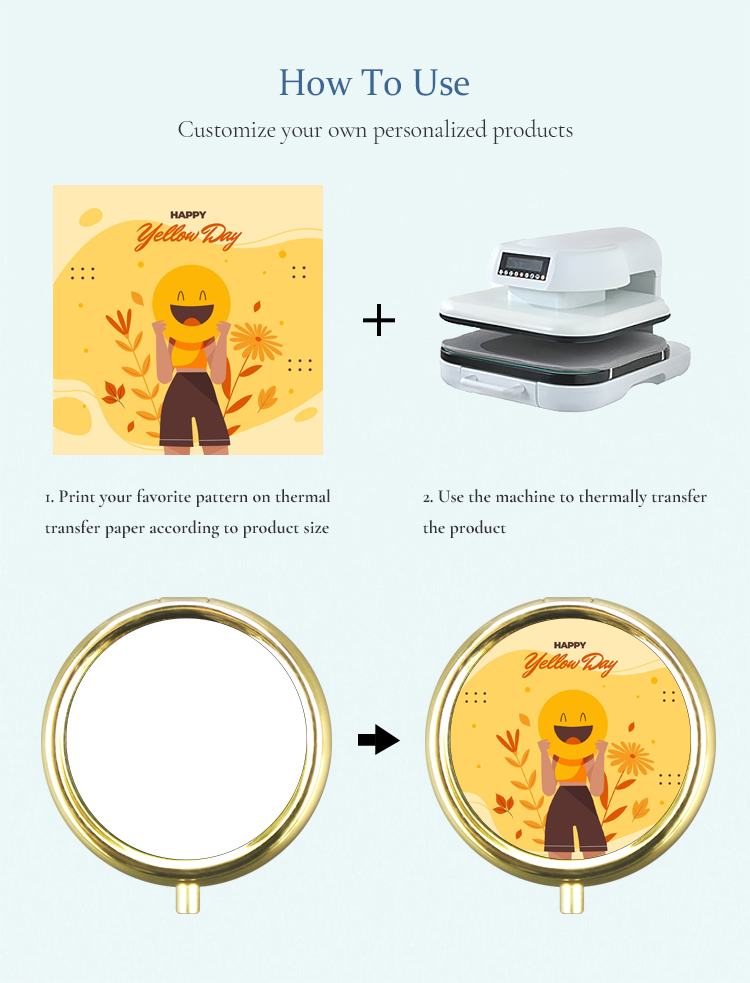 Our sublimation metal pill boxes are perfect as storage or tin containers for medicines, vitamins, etc. Different pictures and designs can be printed on the top cover.To make your personalized Tin Storage Box Case.