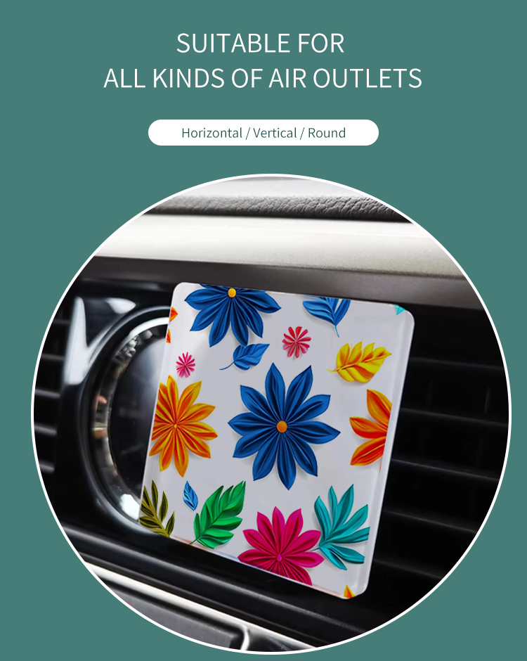 These car air outlet are made of Acrylic.They are a charming addition for you to add with your design, memories or illustrations or logos. car air freshener with air vent clip simple design and classic appearance, air freshener vent clips are not easy to break and can serve you for a long time.