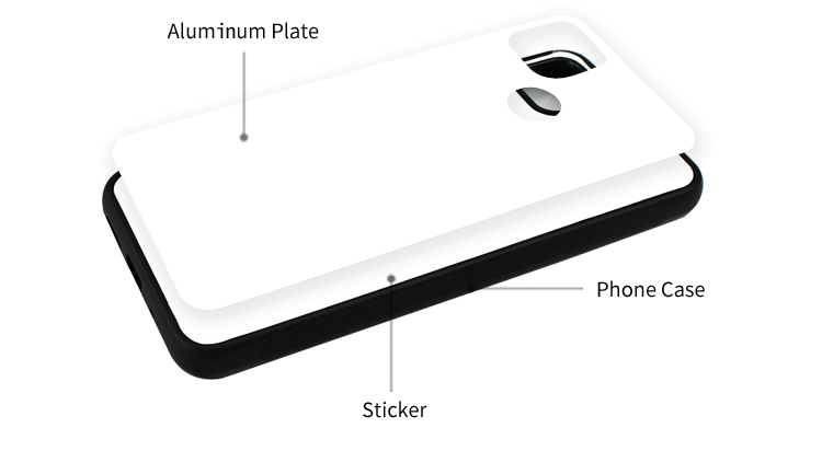 Phone case includes a peel-away strong self-adhesive back to affix your insert to after sublimation.