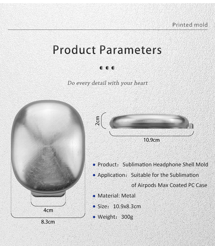 Metal Sublimation Case Mold for Airpods Max,Premium quality hard plastic sublimation case & Full Area Sublimation Printable;Your images and designs could be printed on the blank area.Do your own Simple & Stylish earphone cases.