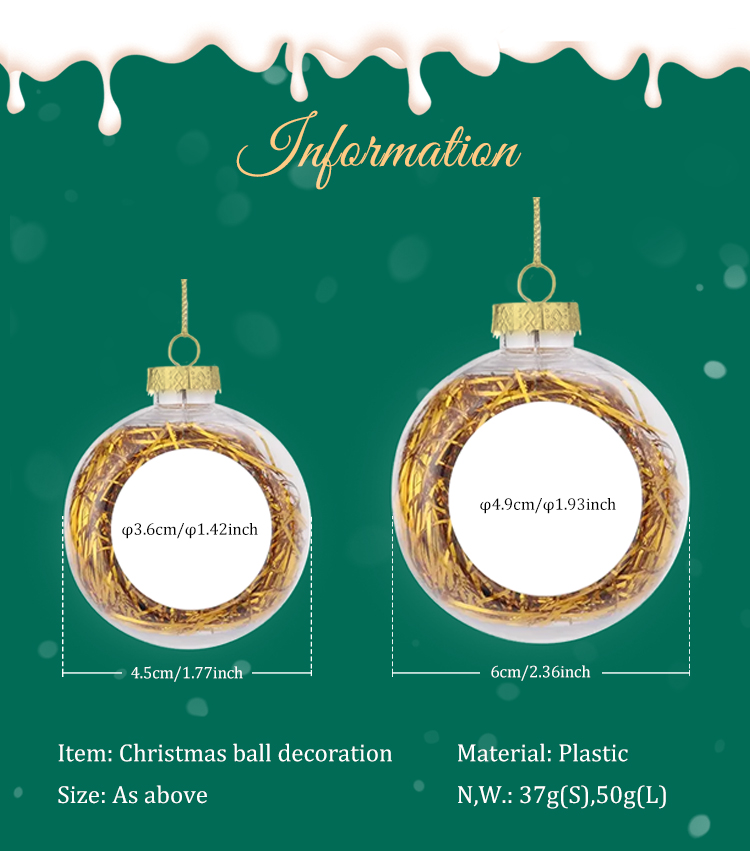 Sublimation Plastic Christmas tree ornaments are the perfect personalised photo-gift, custom or DIY Christmas special pendants.The colourful Christmas ball is a wonderful adornment to decorate the Christmas tree, make happy and peaceful.