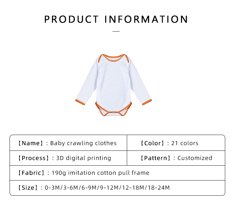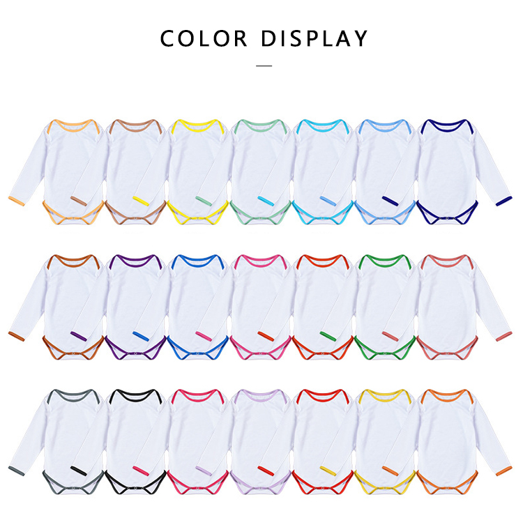 Sublimation Blank Color edge Polyester Long Sleeve Baby Bodysuit Our new premium baby onesies are easy to slip on and have three snap buttons on the bottom.You can print your