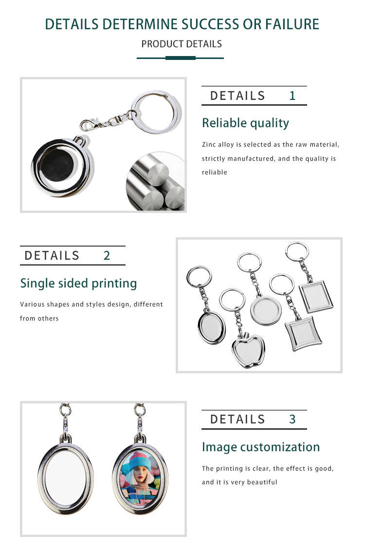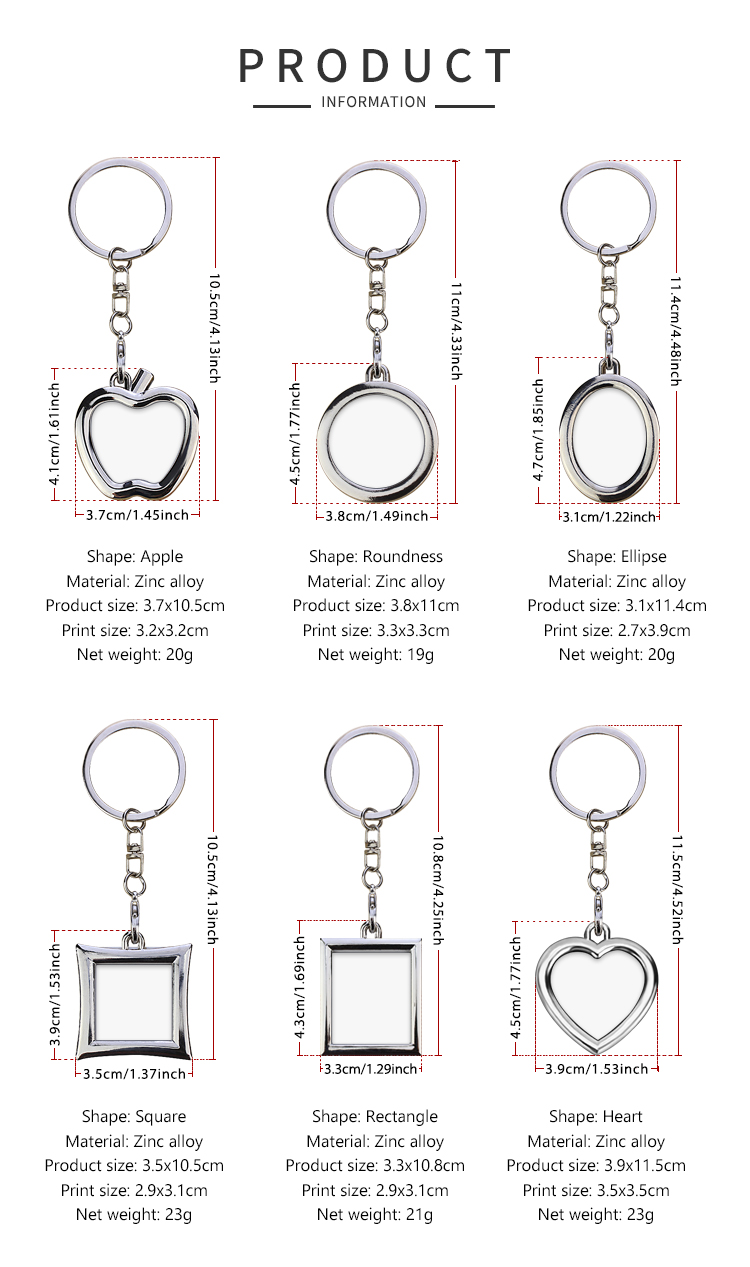 Sublimation Blank Metal Keychain Photo Frame Keychains DIY Custom Design Printable Keyring 6 Shapes Available
