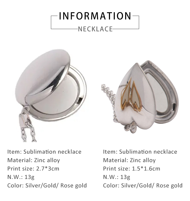 Sublimation Blank Metal Necklace Delicate Jewelry Colors and Shapes Options Personalized Decoration