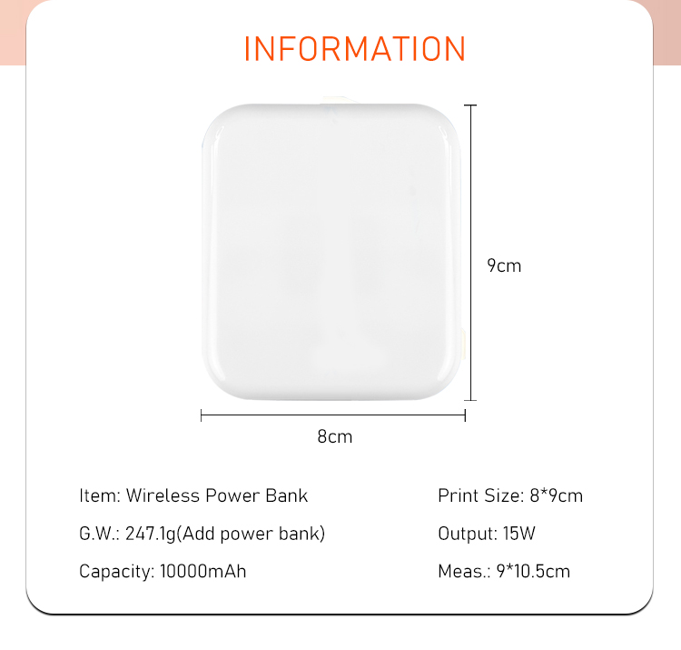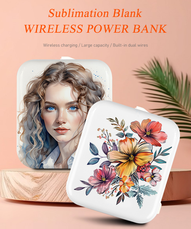 Sublimation Blank Wireless Power Bank 10000mAh Power Bank with Two Data Lines Wireless charging for iPhone 12/13/14/15