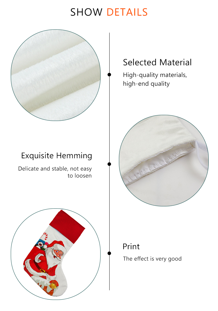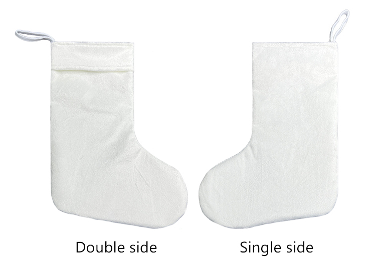 Our Christmas stocking is made with Sequins & Cotton Linen, you can print your logo or image on the white sequins and sublimate print your favourite photo on back Cotton Linen.You can use this special Christmas stocking to fill with presents and candies for your friend or your family!