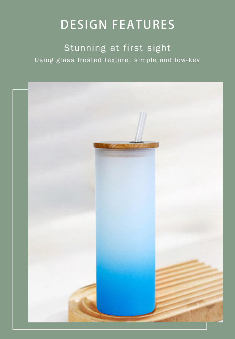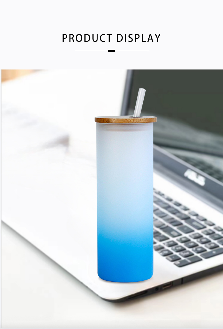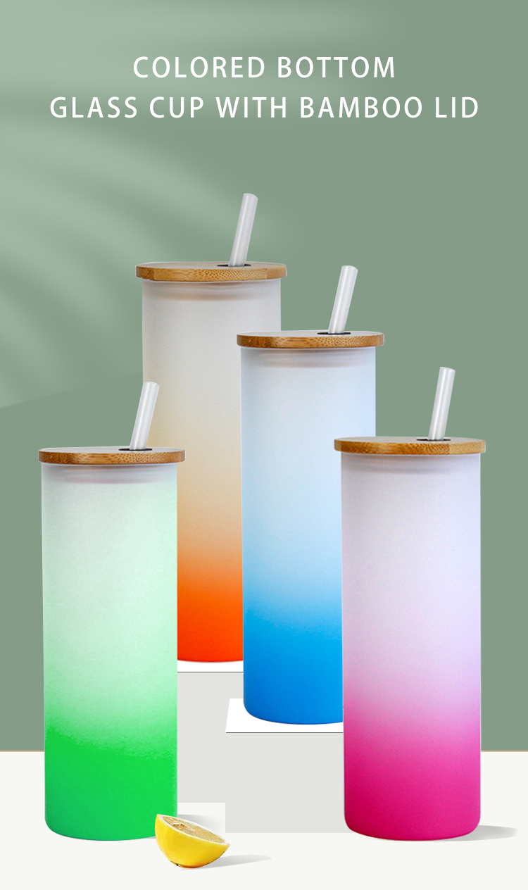 Sublimation Frosted Glass Cup Colored Bottom Mugs With Bamboo Lid