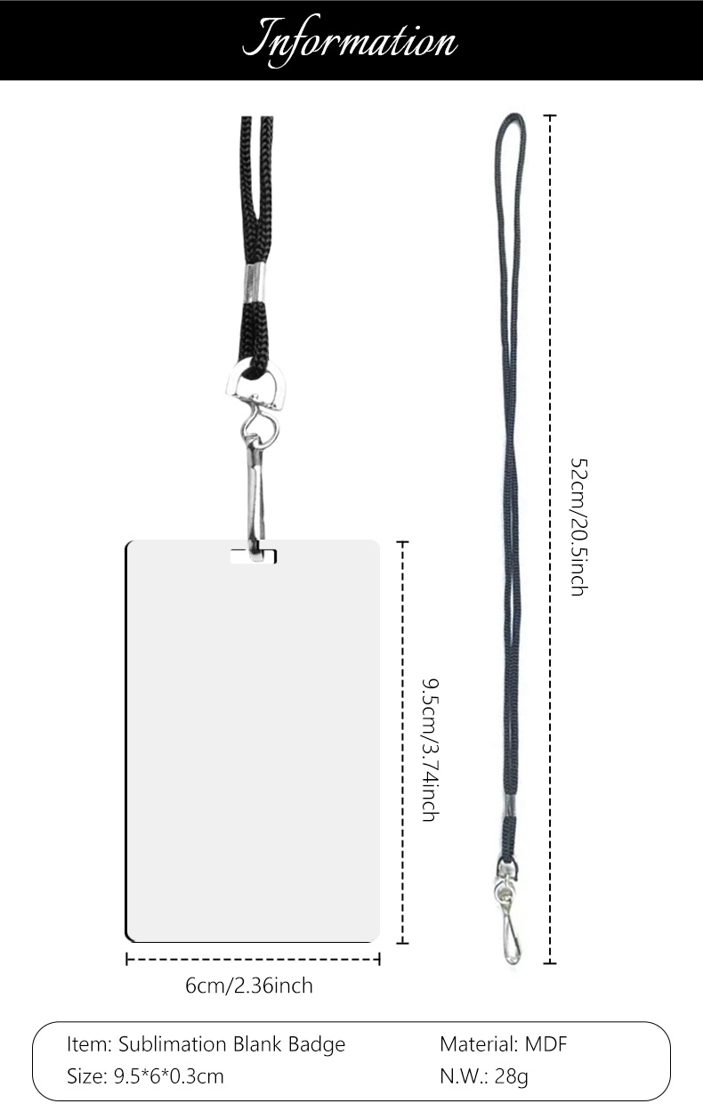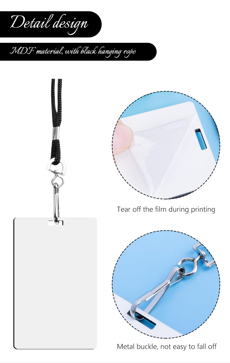 • Sublimation MDF Badges Blank White Work Card with Strap MDF DIY Name Card