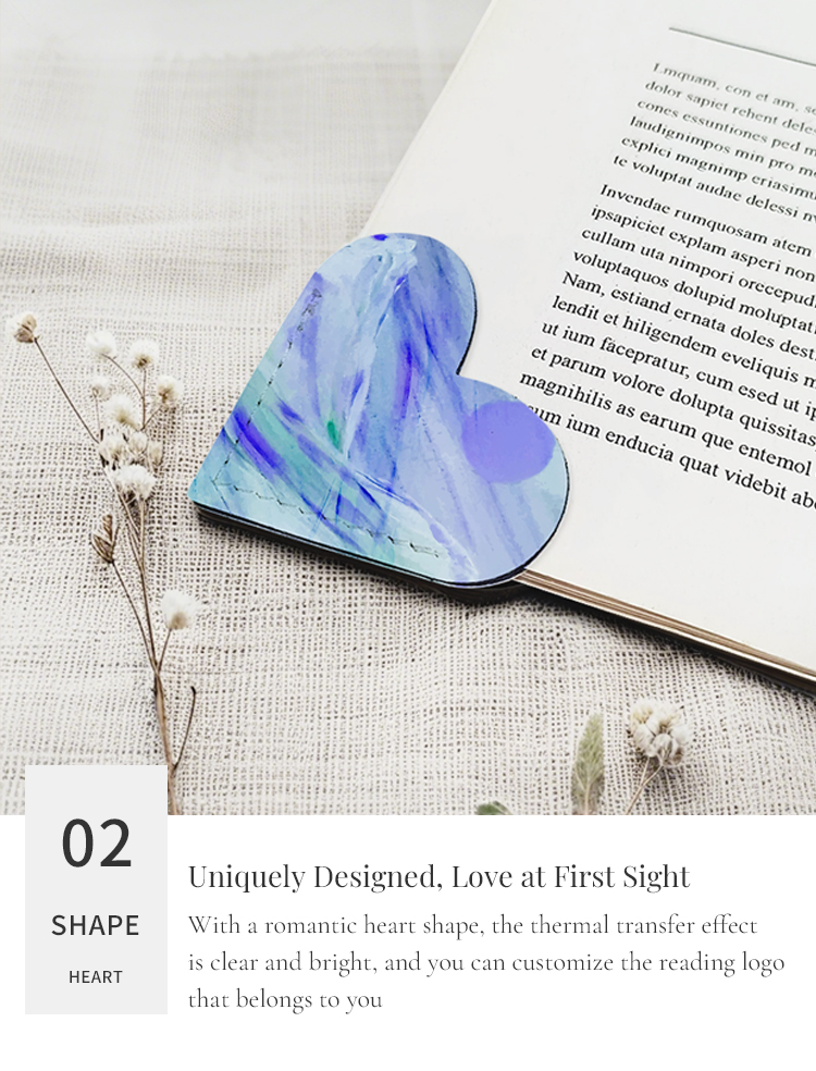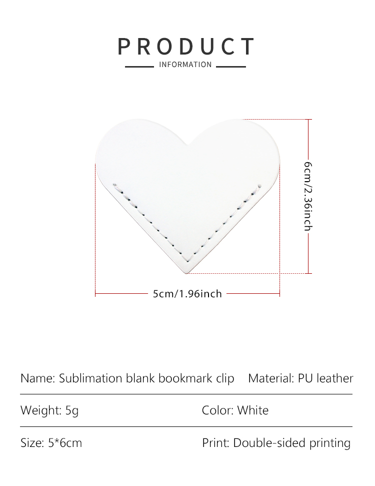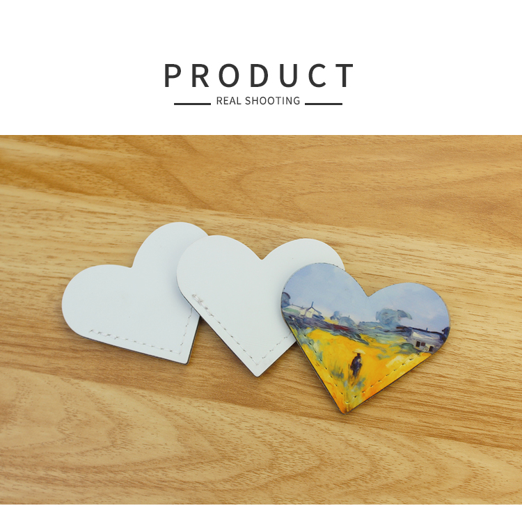 Sublimation PU Leather Bookmark Clip School Supply Double-side Printable Heat Transfer Heart Shape Bookmarks