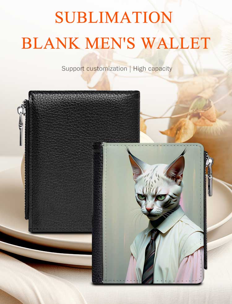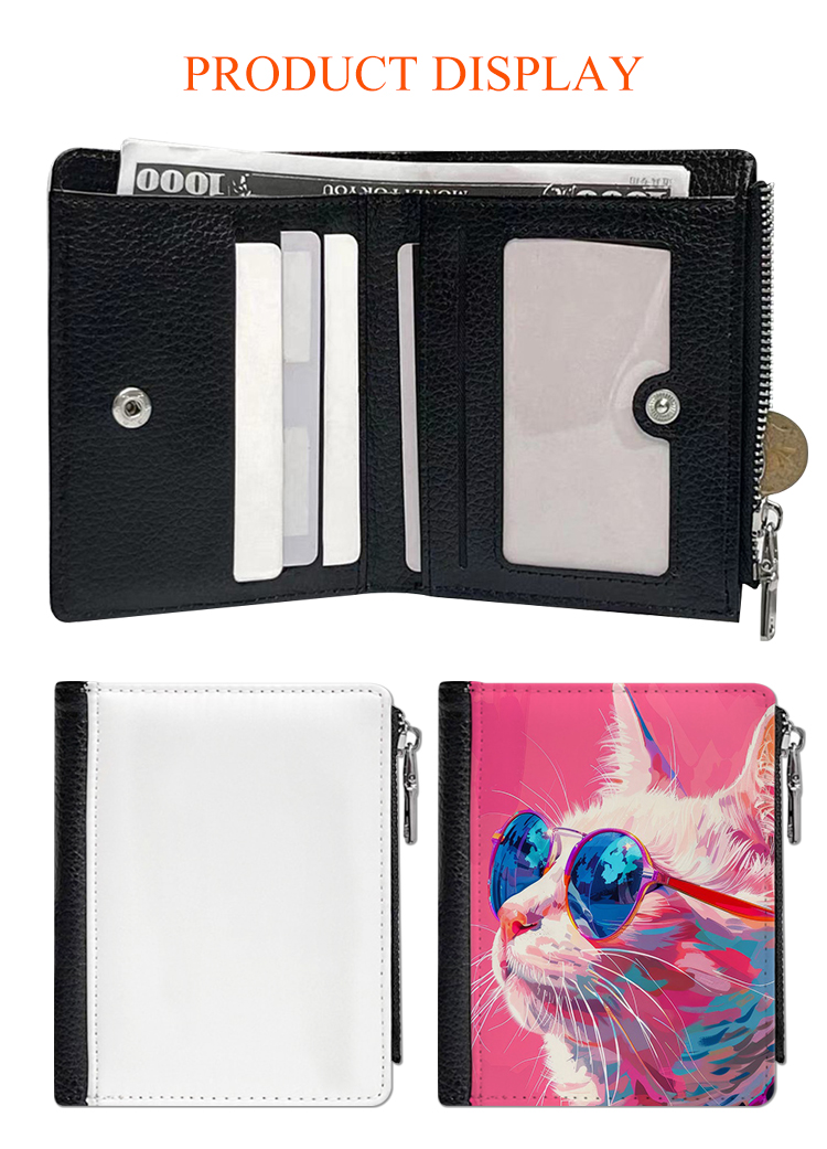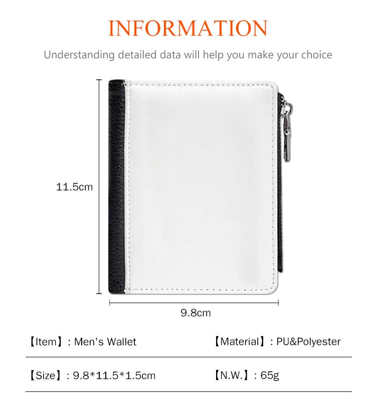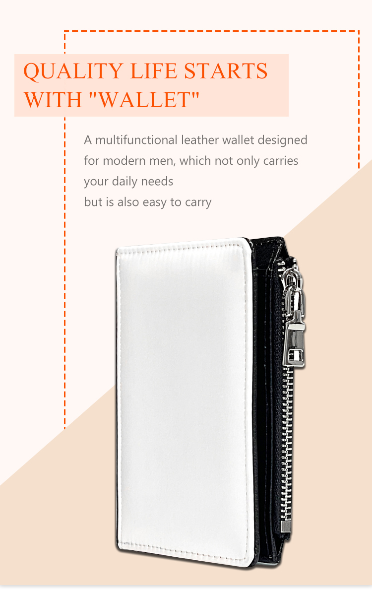Sublimation PU Leather Wallet Heat Transfer Coin Wallet with Zipper Men's Wallet