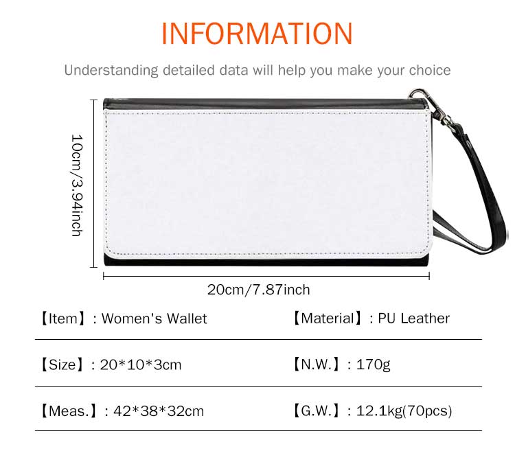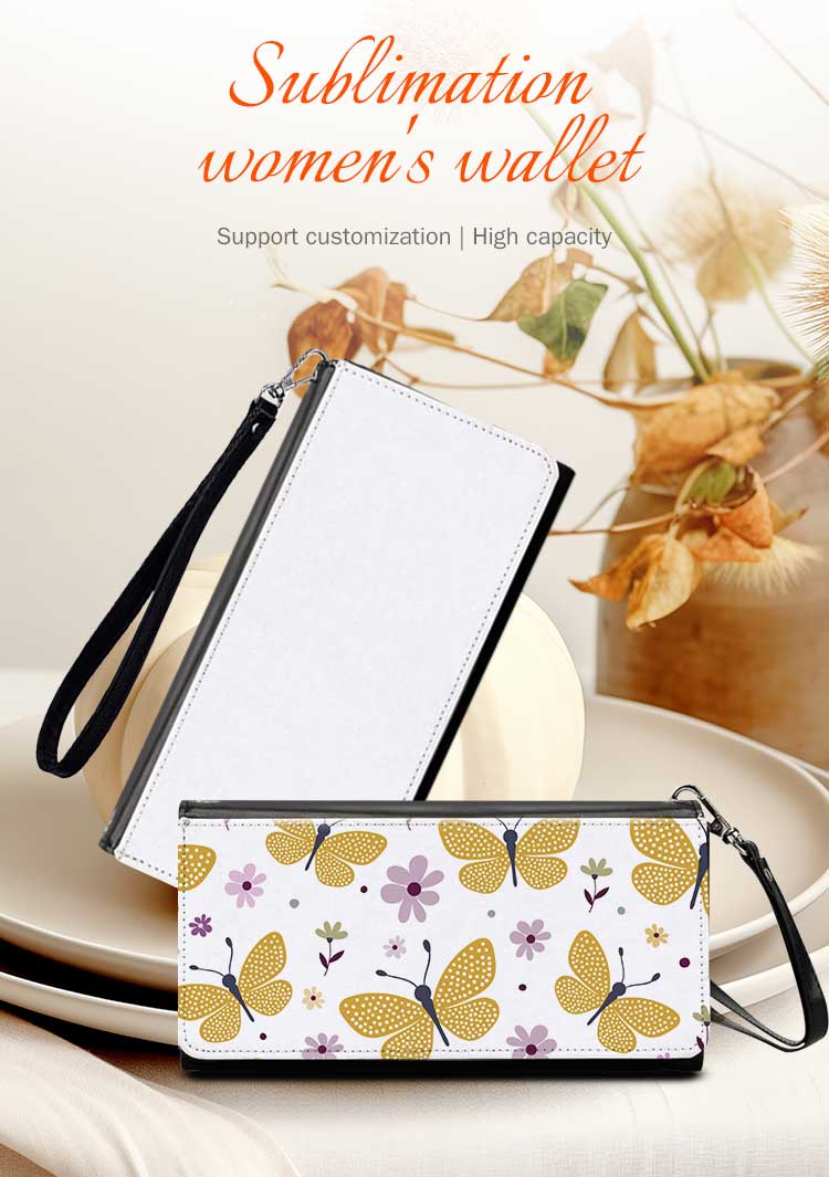 Sublimation PU Leather Women's Wallet Heat Transfer DIY Personalized Single-Sided Printing Portable Wallet with Removable Wrist Strap
