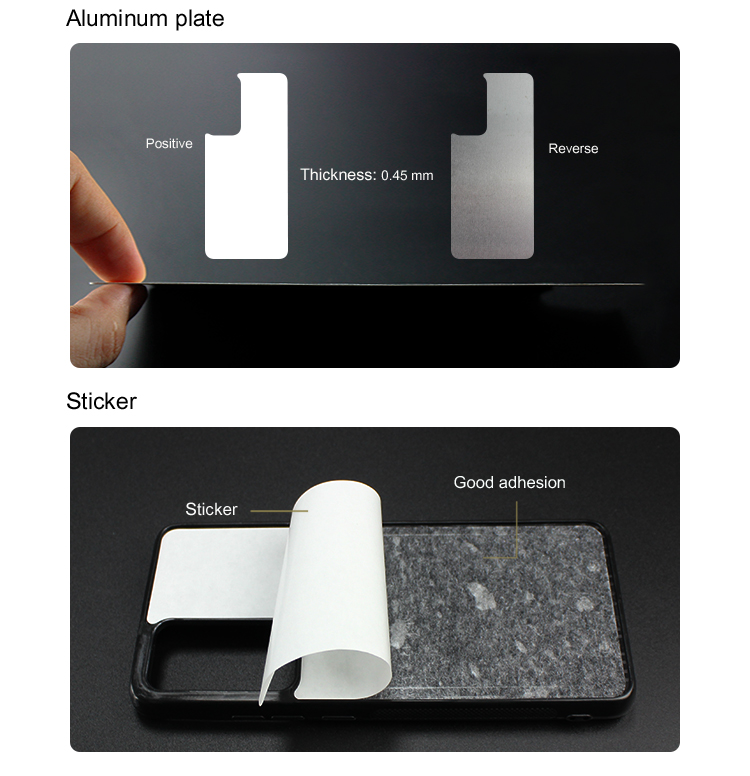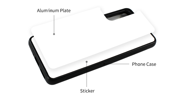 Phone case includes a peel-away strong self-adhesive back to affix your insert to after sublimation.