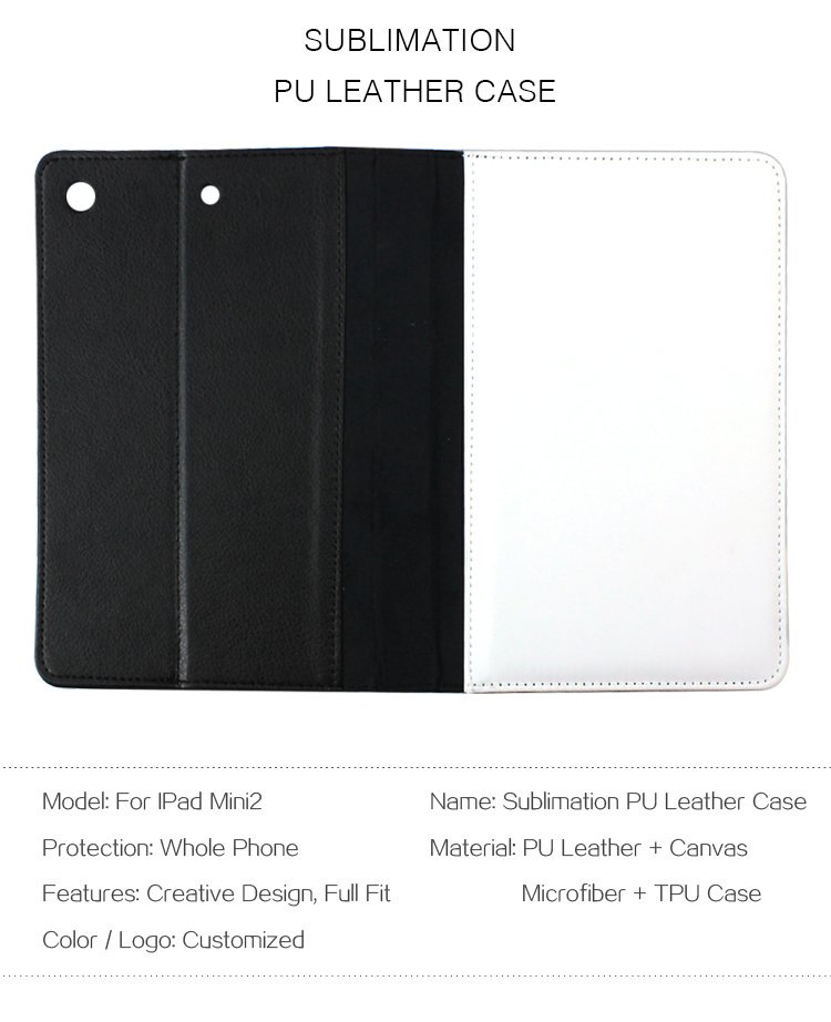 Sublimation TPU Inside Tablet Cover PU Leather Case for iPad Mini 2 with White Canvas Surface