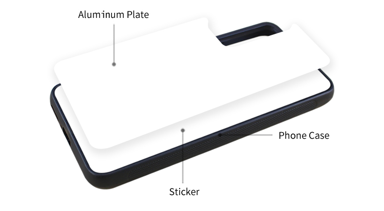 Phone case includes a peel-away strong self-adhesive back to affix your insert to after sublimation.