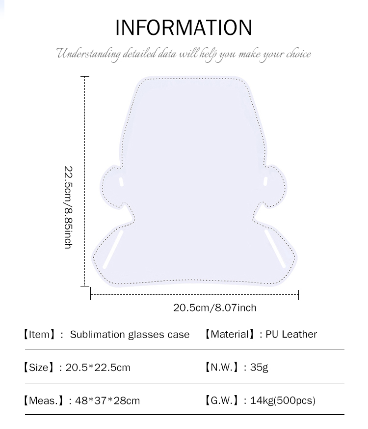 New Heat Transfer Glasses Bag White PU Glasses Case for Customized Printing Storage Bag