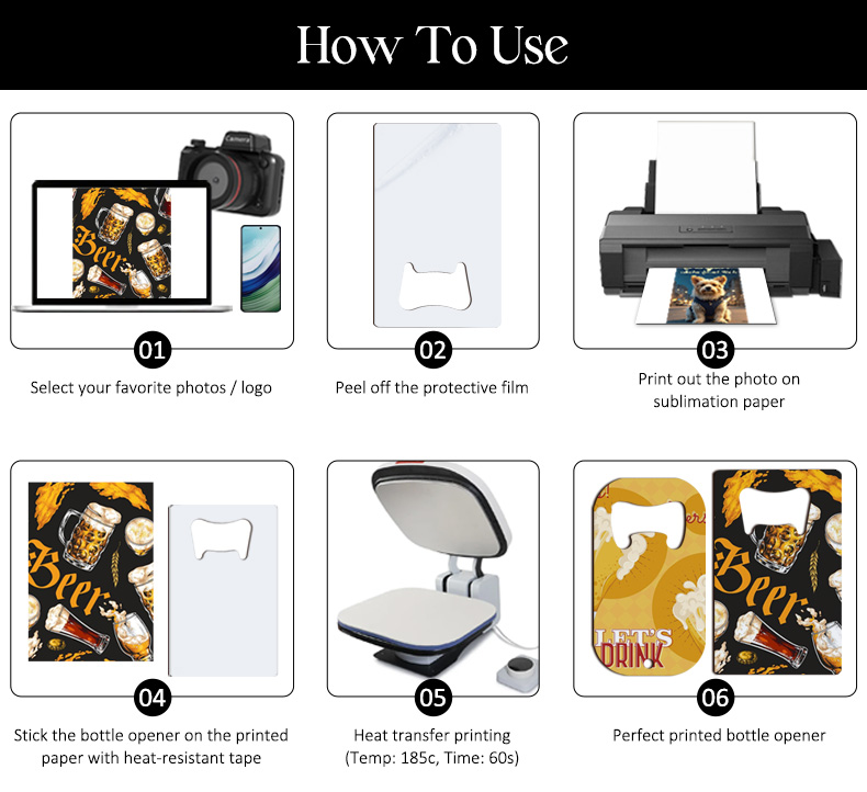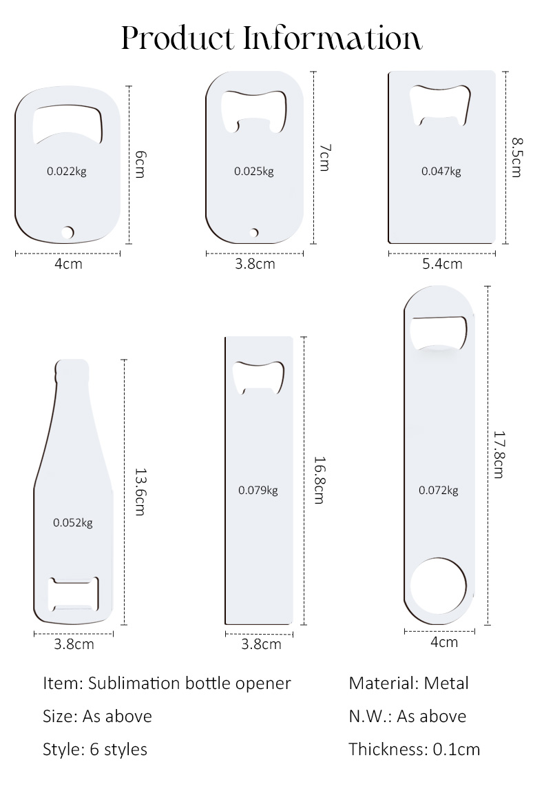 This sublimation blank stainless steel bottle opener is a versatile and practical tool that comes in 6 distinct shapes, offering plenty of options to suit different preferences.
