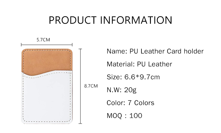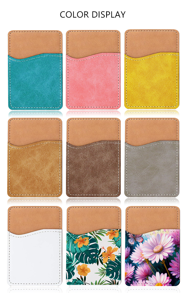 Sublimation Colorful PU Leather Card Holder for Back of Phone Stick